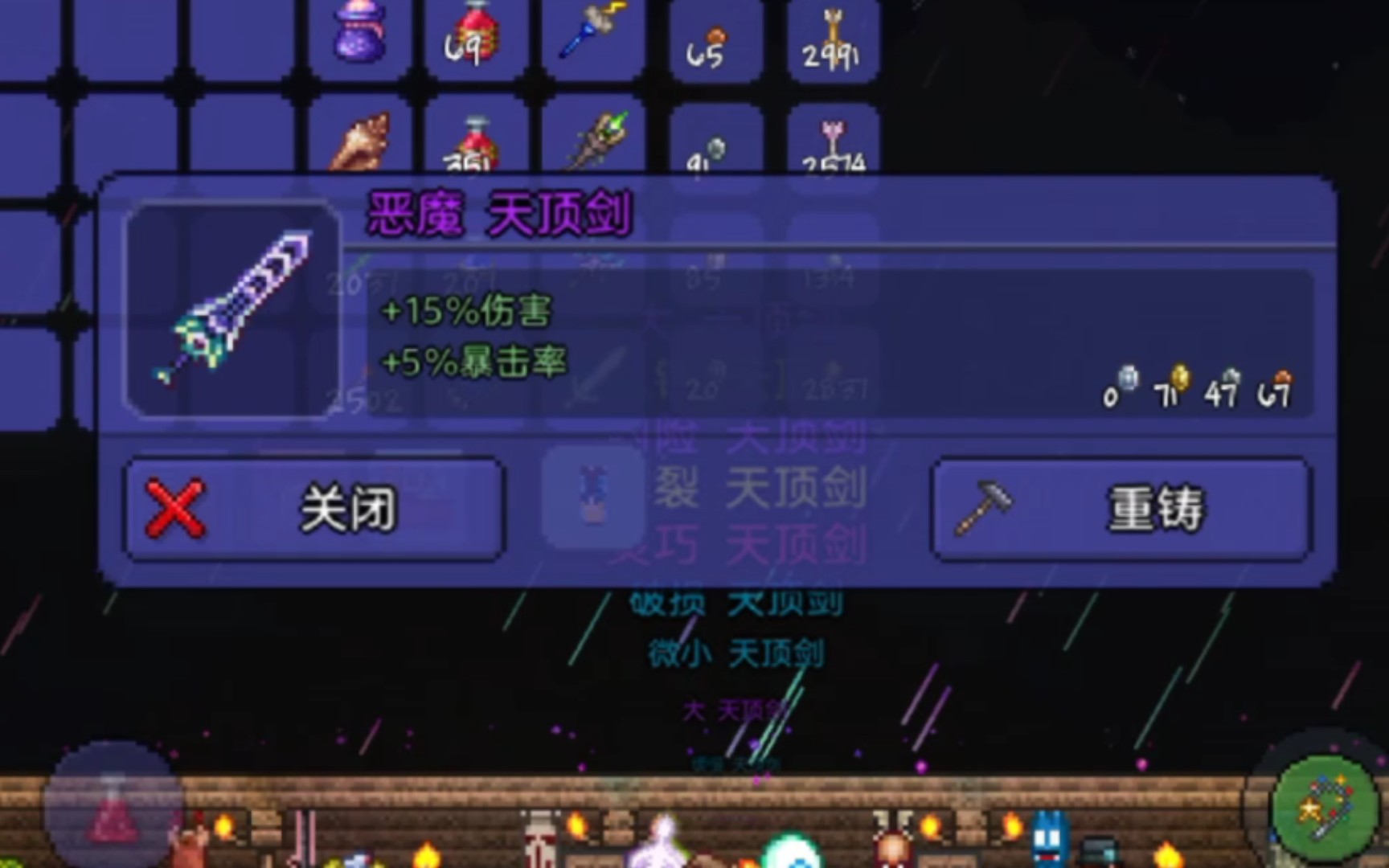 下矿时记得带上足够的火把和绳子,安全第一。木制或仙人掌盔甲能提供基础防御,但别在蘑菇地附近建家,否则会被巨型蘑菇怪围攻。如果运气好,宝箱里可能找到火花魔棒,这是法师的第一把武器,虽然弹道一般,但前期够用。腐化或猩红之地的暗影珠/猩红之心砸碎后有概率掉落魔刺或猩红魔杖,穿墙攻击能力在探索时非常实用。